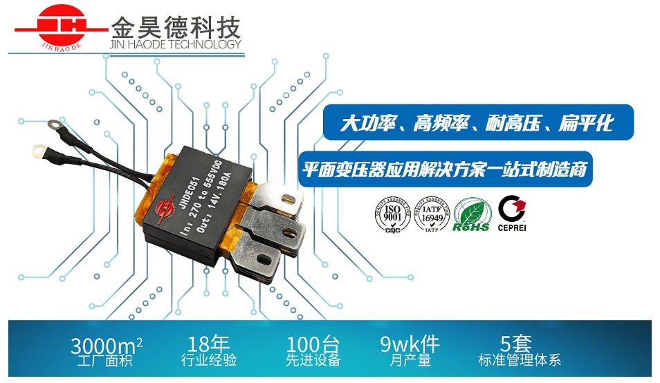 近年来,随着国内电源产业链的不断完善,越来越多企业投入到平面变压器的研发与生产中。例如深圳市金昊德科技有限公司,就在平面变压器、扁平电感等磁性元件的研发和定制领域积累了丰富经验。其研发团队结合自动化生产工艺,为新能源汽车和高端电源企业提供了批量化的定制方案,推动了国产平面变压器在性能和可靠性上的提升。